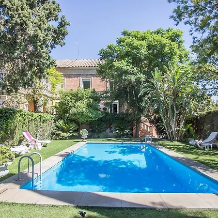 Villa De La Palmera Sevilla hotel met 7 kamers heeft een zwembad en ligt in de Sur wijk binnen 20 minuten loopafstand van het Plaza de América.